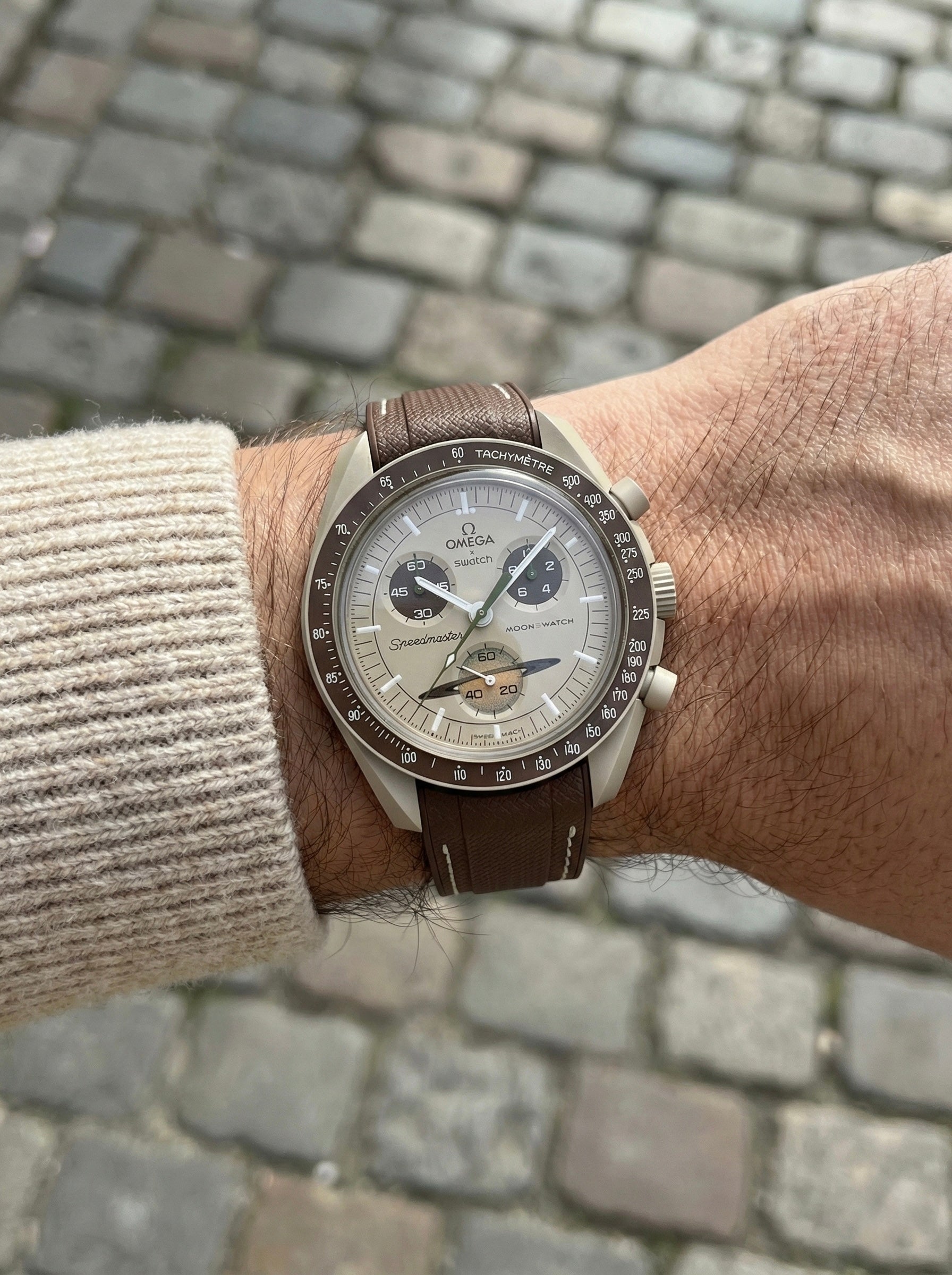 Light Brown/White Stitch Rubber Strap 20mm, Curved End