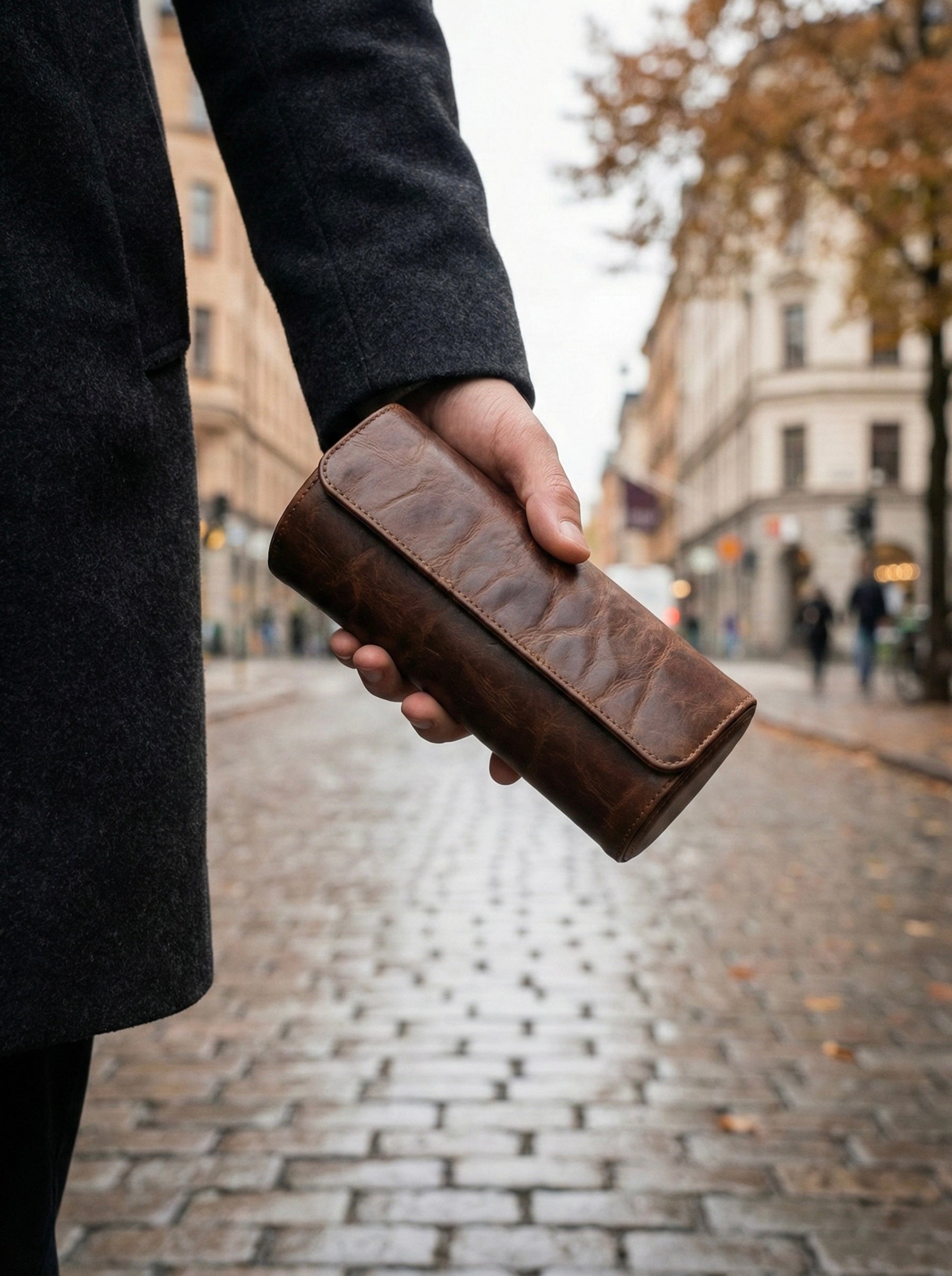 Dark Brown/White Stitch Rubber Strap 20mm, Curved End