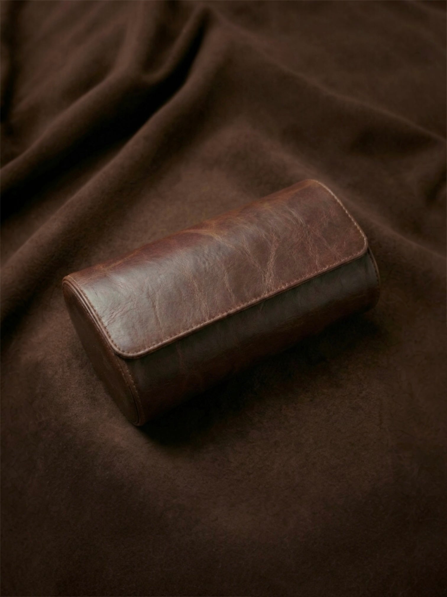 This brown leather watch case combines classic elegance with practical function. Made from carefully selected leather with a natural texture and deep tone, the case has an exclusive feel that only gets more beautiful with time.